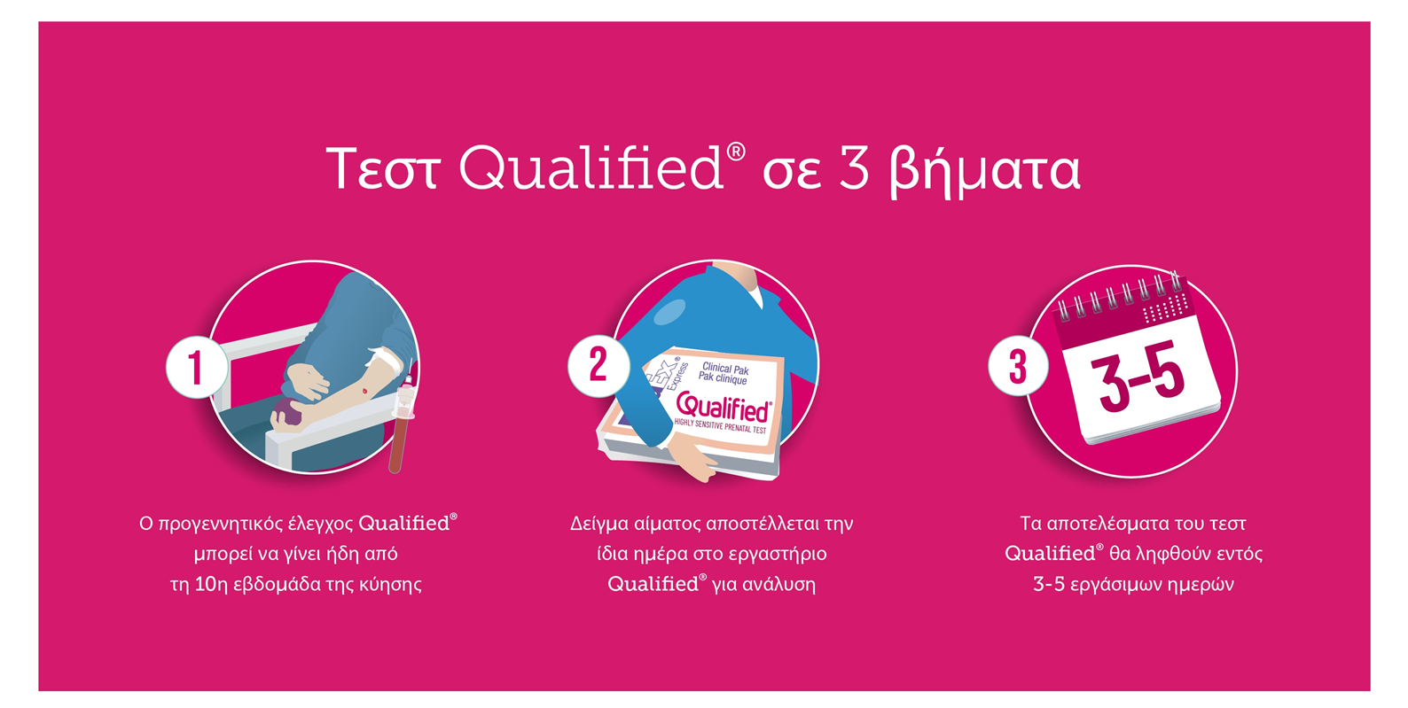 Το τεστ Qualified® μπορεί να γίνει ήδη από τη 10η εβδομάδα κύησης (από την εβδομάδα 10+0).